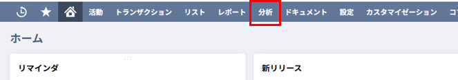 「データセット」を設定するには、始めにメニューの「分析」をクリックします。