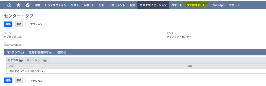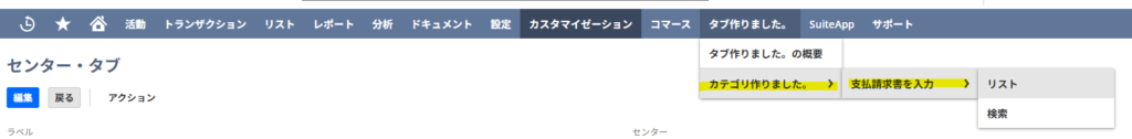 Netsuiteではユーザーがタブを作成して追加させることが可能です。