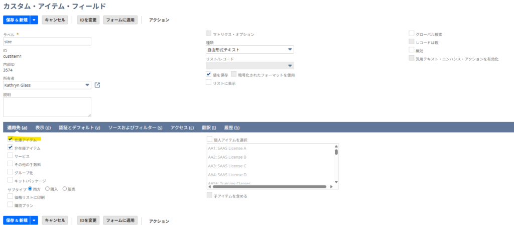 アイテムの新規作成画面を表示してみると項目が追加されていることがわかります。