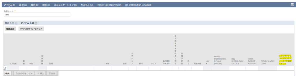 トランザクション・ライン・フィールドはトランザクションに対してラインアイテムレベルのフィールドを追加します。